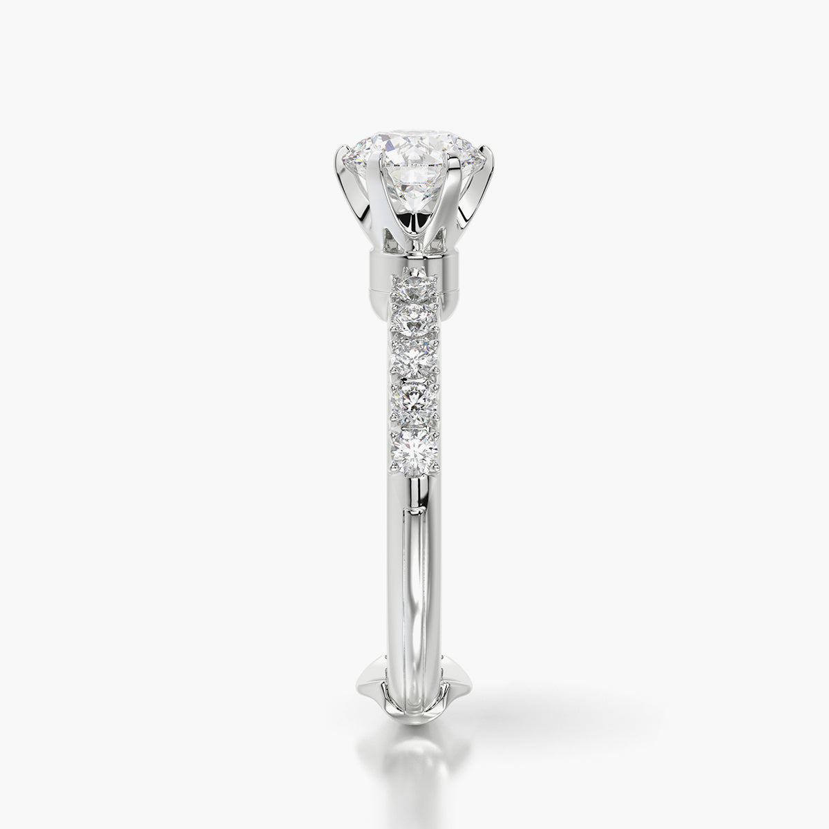 The Side Stone TRing features diamonds set along the band on both sides of the center stone, adding depth and refined detail to the design.
